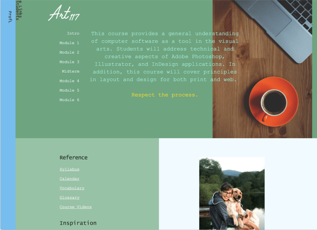 Screenshot of home page and page of syllabus.